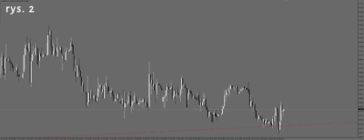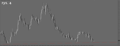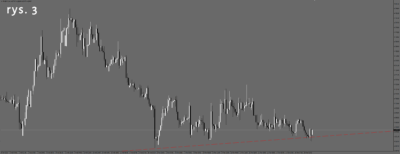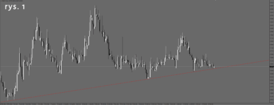 Na wykresie dolara jest bardzo podobnie(rys. 4), choć tu wykres nie dotarł jeszcze do linii wsparcia, ale jest bardzo blisko i jakby nie miał mocy, aby się do niej zbliżyć.